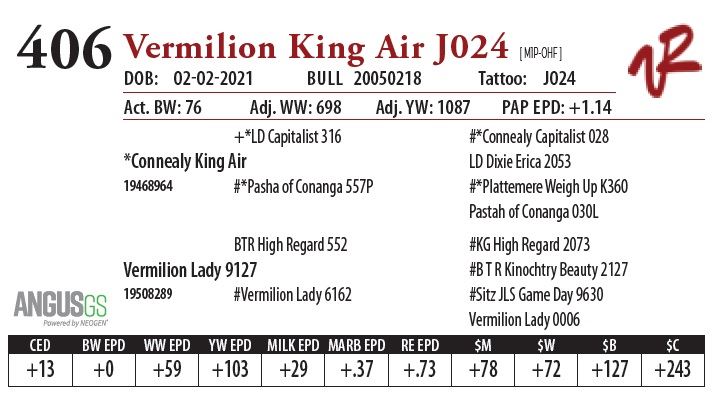 All bulls will be covered 50% by Vermilion Ranch if they are injured during their first breeding season. Breeding season is defined as the 60-day period following the first turnout of bulls.