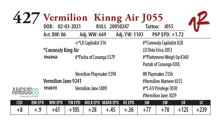 All bulls will be covered 50% by Vermilion Ranch if they are injured during their first breeding season. Breeding season is defined as the 60-day period following the first turnout of bulls.