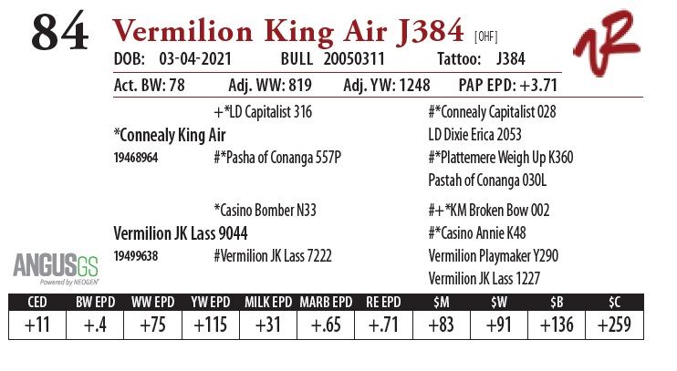 All bulls will be covered 50% by Vermilion Ranch if they are injured during their first breeding season. Breeding season is defined as the 60-day period following the first turnout of bulls.