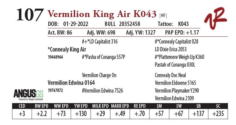 All bulls will be covered 50% by Vermilion Ranch if they are injured during their first breeding season. Breeding season is defined as the 60-day period following the first turnout of bulls.