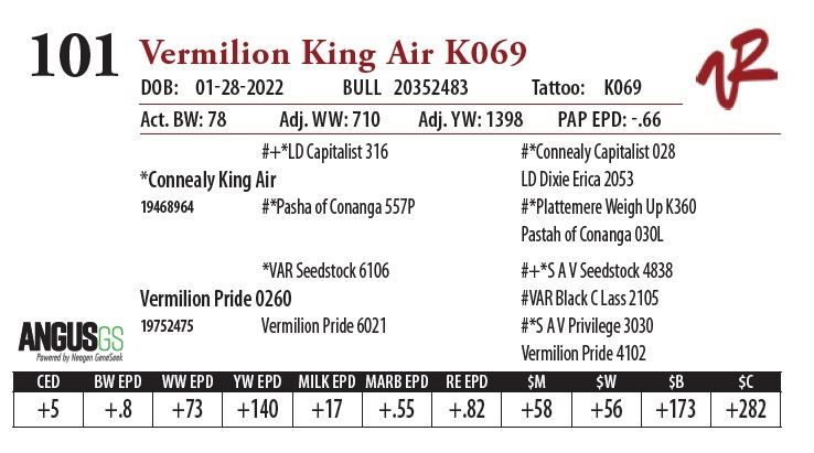 All bulls will be covered 50% by Vermilion Ranch if they are injured during their first breeding season. Breeding season is defined as the 60-day period following the first turnout of bulls.