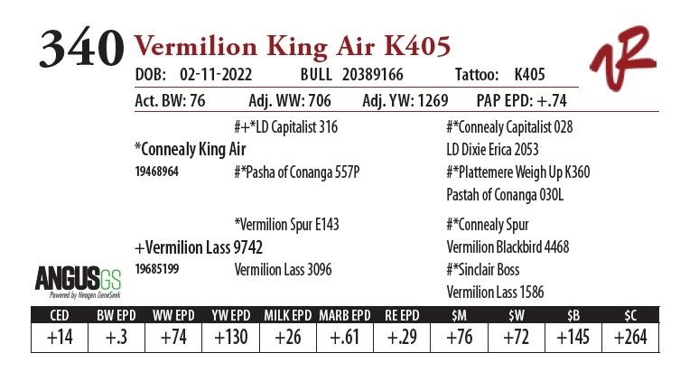 All bulls will be covered 50% by Vermilion Ranch if they are injured during their first breeding season. Breeding season is defined as the 60-day period following the first turnout of bulls.