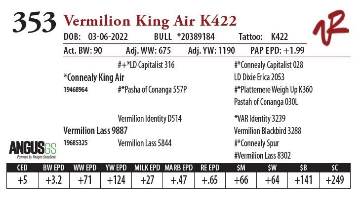 All bulls will be covered 50% by Vermilion Ranch if they are injured during their first breeding season. Breeding season is defined as the 60-day period following the first turnout of bulls.