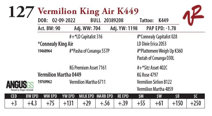 All bulls will be covered 50% by Vermilion Ranch if they are injured during their first breeding season. Breeding season is defined as the 60-day period following the first turnout of bulls.