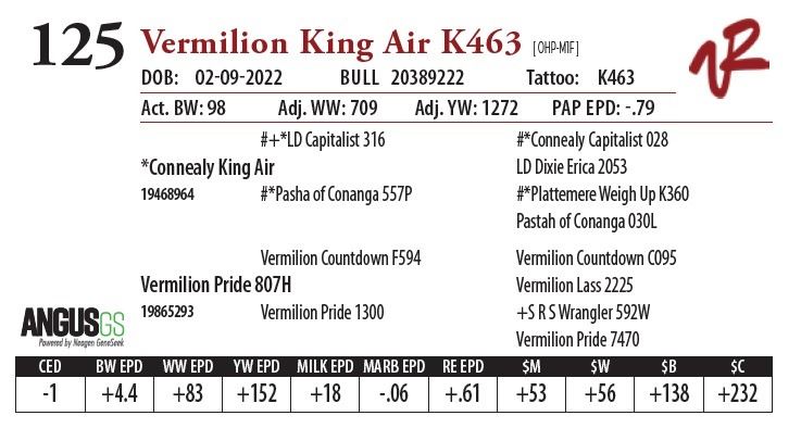 All bulls will be covered 50% by Vermilion Ranch if they are injured during their first breeding season. Breeding season is defined as the 60-day period following the first turnout of bulls.