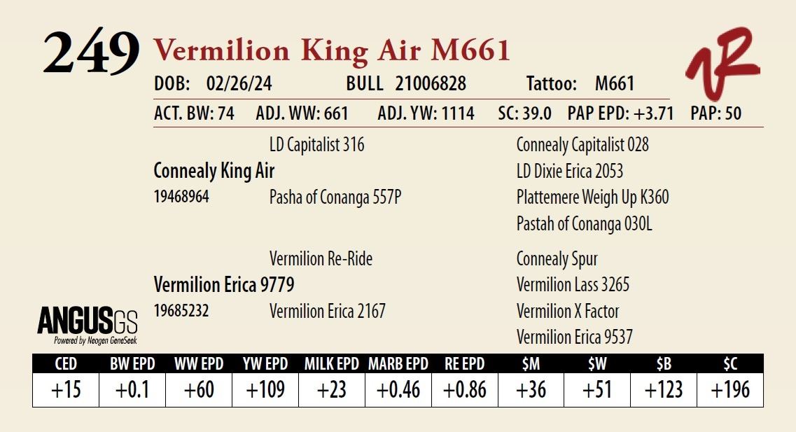 All bulls will be covered 50% by Vermilion Ranch if they are injured during their first breeding season. Breeding season is defined as the 60-day period following the first turnout of bulls.