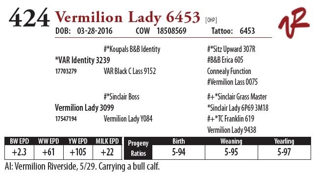 All bulls will be covered 50% by Vermilion Ranch if they are injured during their first breeding season. Breeding season is defined as the 60-day period following the first turnout of bulls.