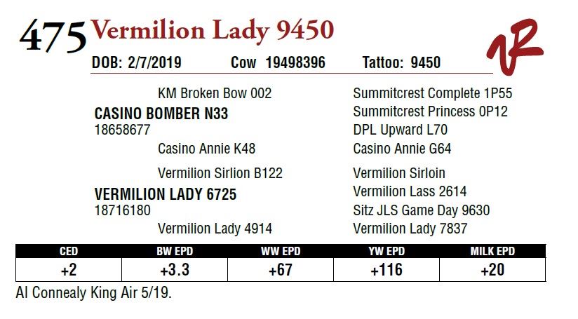 All bulls will be covered 50% by Vermilion Ranch if they are injured during their first breeding season. Breeding season is defined as the 60-day period following the first turnout of bulls.