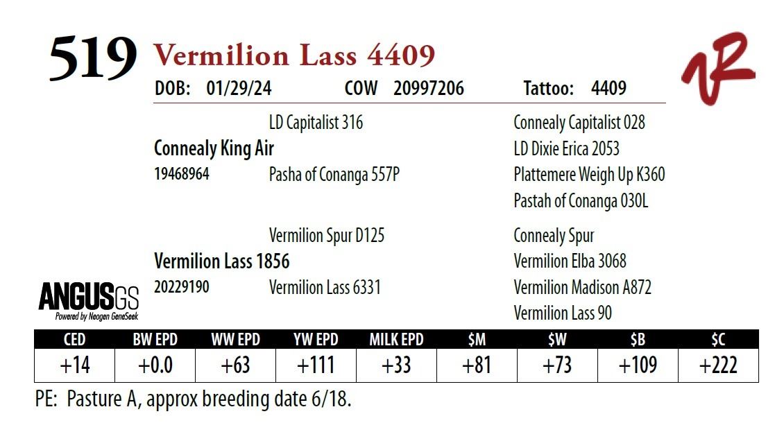 All bulls will be covered 50% by Vermilion Ranch if they are injured during their first breeding season. Breeding season is defined as the 60-day period following the first turnout of bulls.