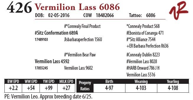 All bulls will be covered 50% by Vermilion Ranch if they are injured during their first breeding season. Breeding season is defined as the 60-day period following the first turnout of bulls.