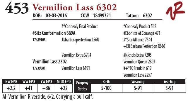 All bulls will be covered 50% by Vermilion Ranch if they are injured during their first breeding season. Breeding season is defined as the 60-day period following the first turnout of bulls.
