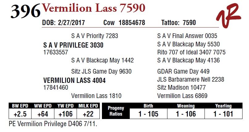 All bulls will be covered 50% by Vermilion Ranch if they are injured during their first breeding season. Breeding season is defined as the 60-day period following the first turnout of bulls.