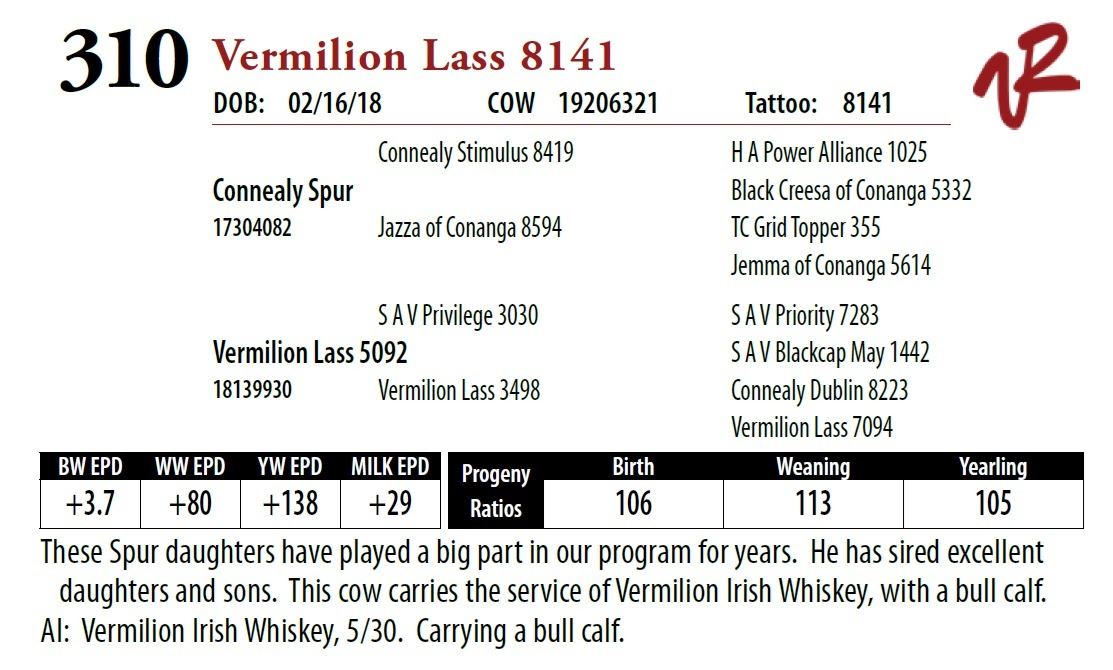 All bulls will be covered 50% by Vermilion Ranch if they are injured during their first breeding season. Breeding season is defined as the 60-day period following the first turnout of bulls.
