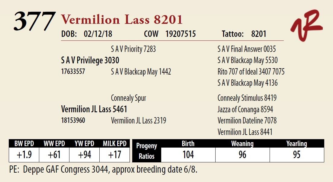 All bulls will be covered 50% by Vermilion Ranch if they are injured during their first breeding season. Breeding season is defined as the 60-day period following the first turnout of bulls.