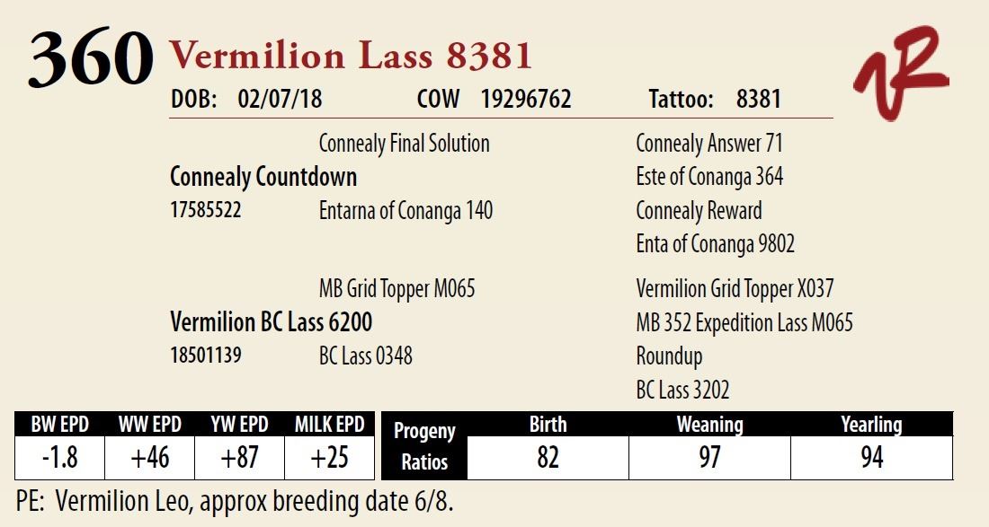 All bulls will be covered 50% by Vermilion Ranch if they are injured during their first breeding season. Breeding season is defined as the 60-day period following the first turnout of bulls.