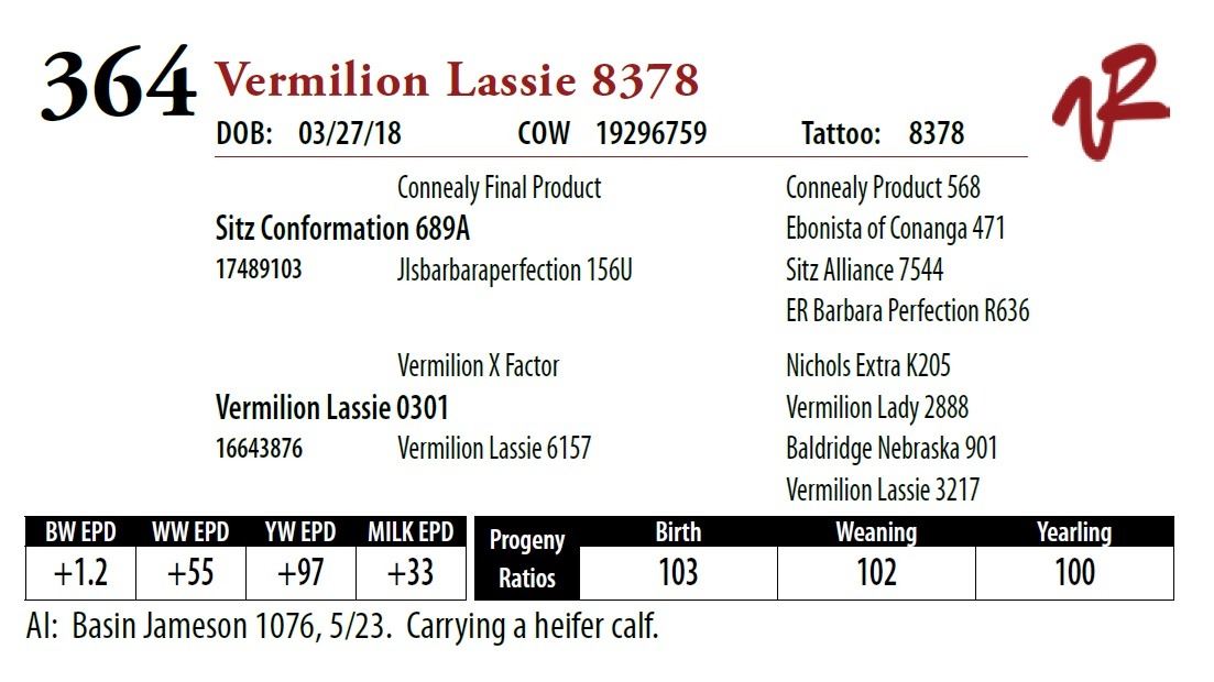 All bulls will be covered 50% by Vermilion Ranch if they are injured during their first breeding season. Breeding season is defined as the 60-day period following the first turnout of bulls.