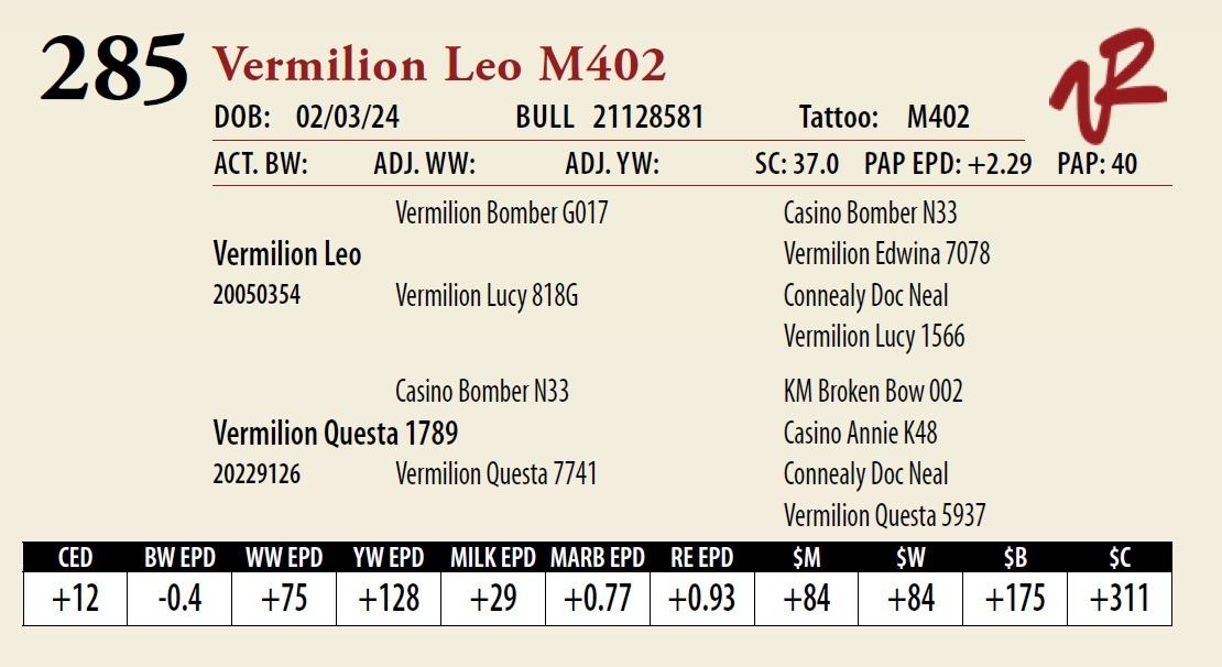 All bulls will be covered 50% by Vermilion Ranch if they are injured during their first breeding season. Breeding season is defined as the 60-day period following the first turnout of bulls.