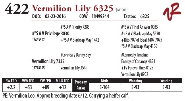 All bulls will be covered 50% by Vermilion Ranch if they are injured during their first breeding season. Breeding season is defined as the 60-day period following the first turnout of bulls.