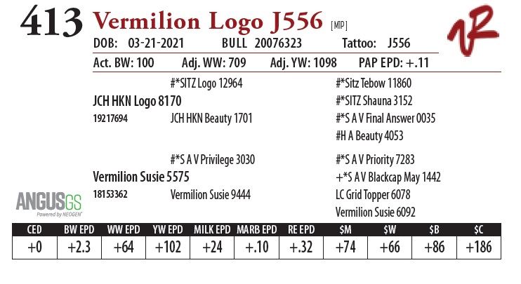All bulls will be covered 50% by Vermilion Ranch if they are injured during their first breeding season. Breeding season is defined as the 60-day period following the first turnout of bulls.