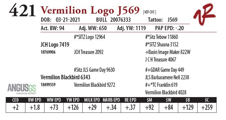 All bulls will be covered 50% by Vermilion Ranch if they are injured during their first breeding season. Breeding season is defined as the 60-day period following the first turnout of bulls.