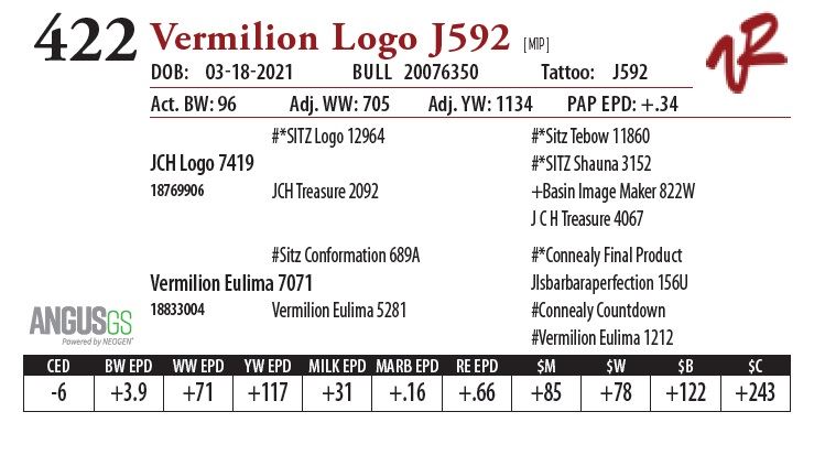 All bulls will be covered 50% by Vermilion Ranch if they are injured during their first breeding season. Breeding season is defined as the 60-day period following the first turnout of bulls.