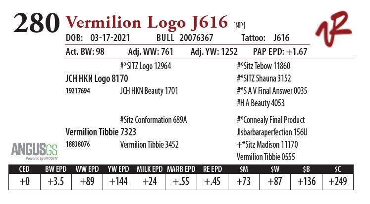 All bulls will be covered 50% by Vermilion Ranch if they are injured during their first breeding season. Breeding season is defined as the 60-day period following the first turnout of bulls.