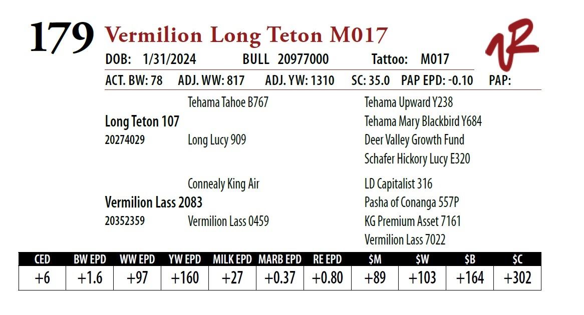 All bulls will be covered 50% by Vermilion Ranch if they are injured during their first breeding season. Breeding season is defined as the 60-day period following the first turnout of bulls.