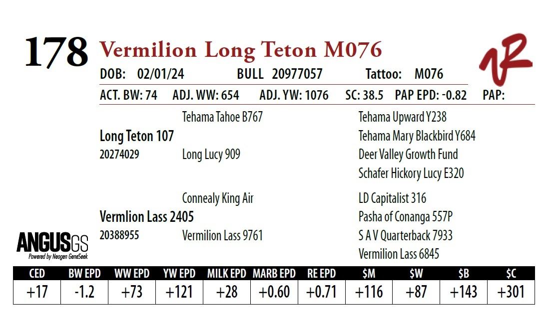 All bulls will be covered 50% by Vermilion Ranch if they are injured during their first breeding season. Breeding season is defined as the 60-day period following the first turnout of bulls.