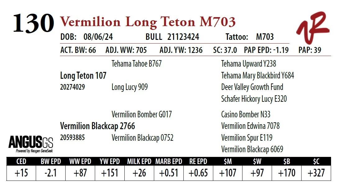 All bulls will be covered 50% by Vermilion Ranch if they are injured during their first breeding season. Breeding season is defined as the 60-day period following the first turnout of bulls.