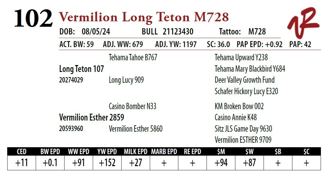 All bulls will be covered 50% by Vermilion Ranch if they are injured during their first breeding season. Breeding season is defined as the 60-day period following the first turnout of bulls.