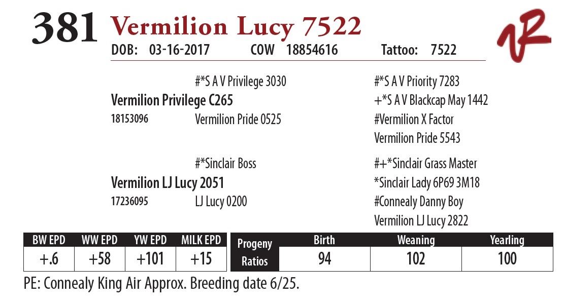 All bulls will be covered 50% by Vermilion Ranch if they are injured during their first breeding season. Breeding season is defined as the 60-day period following the first turnout of bulls.