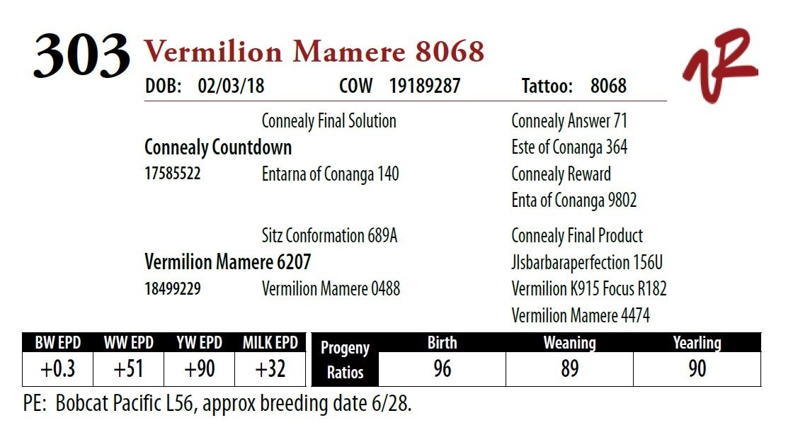 All bulls will be covered 50% by Vermilion Ranch if they are injured during their first breeding season. Breeding season is defined as the 60-day period following the first turnout of bulls.