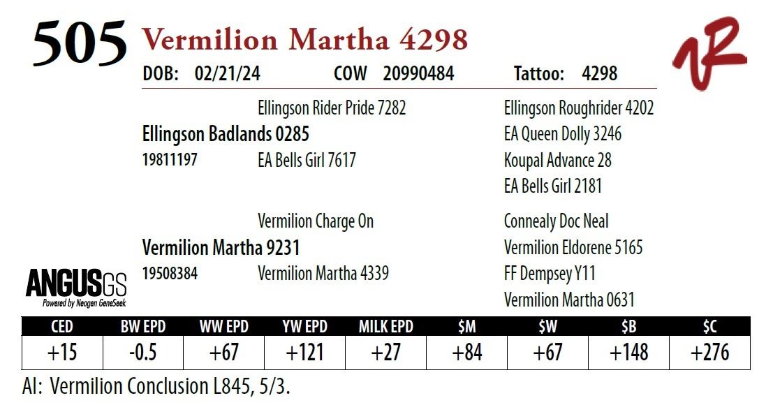 All bulls will be covered 50% by Vermilion Ranch if they are injured during their first breeding season. Breeding season is defined as the 60-day period following the first turnout of bulls.