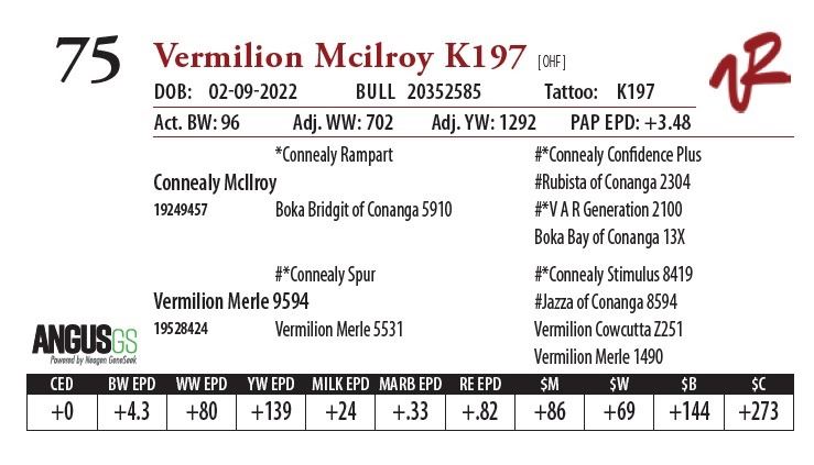 All bulls will be covered 50% by Vermilion Ranch if they are injured during their first breeding season. Breeding season is defined as the 60-day period following the first turnout of bulls.