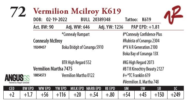 All bulls will be covered 50% by Vermilion Ranch if they are injured during their first breeding season. Breeding season is defined as the 60-day period following the first turnout of bulls.