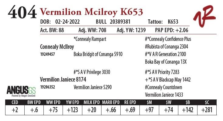 All bulls will be covered 50% by Vermilion Ranch if they are injured during their first breeding season. Breeding season is defined as the 60-day period following the first turnout of bulls.