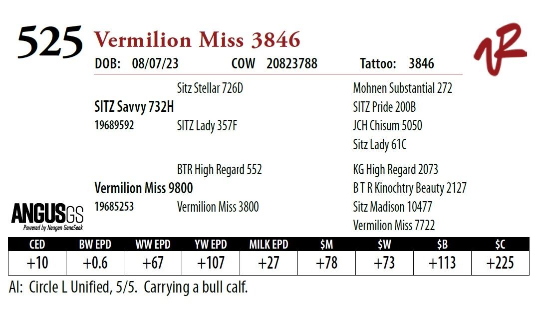 All bulls will be covered 50% by Vermilion Ranch if they are injured during their first breeding season. Breeding season is defined as the 60-day period following the first turnout of bulls.
