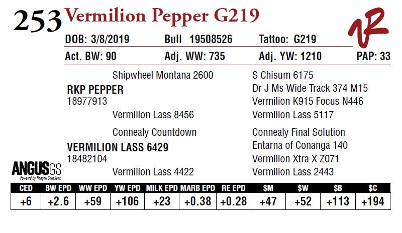 All bulls will be covered 50% by Vermilion Ranch if they are injured during their first breeding season. Breeding season is defined as the 60-day period following the first turnout of bulls.