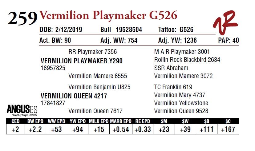 All bulls will be covered 50% by Vermilion Ranch if they are injured during their first breeding season. Breeding season is defined as the 60-day period following the first turnout of bulls.