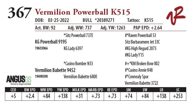 All bulls will be covered 50% by Vermilion Ranch if they are injured during their first breeding season. Breeding season is defined as the 60-day period following the first turnout of bulls.