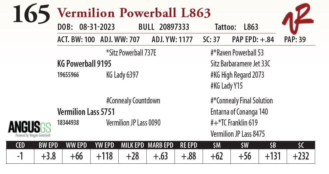 All bulls will be covered 50% by Vermilion Ranch if they are injured during their first breeding season. Breeding season is defined as the 60-day period following the first turnout of bulls.