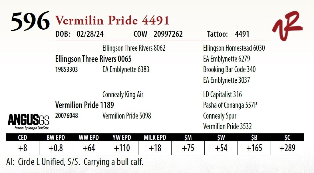 All bulls will be covered 50% by Vermilion Ranch if they are injured during their first breeding season. Breeding season is defined as the 60-day period following the first turnout of bulls.