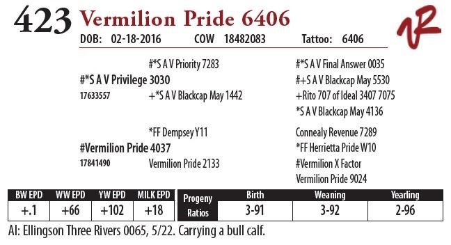 All bulls will be covered 50% by Vermilion Ranch if they are injured during their first breeding season. Breeding season is defined as the 60-day period following the first turnout of bulls.