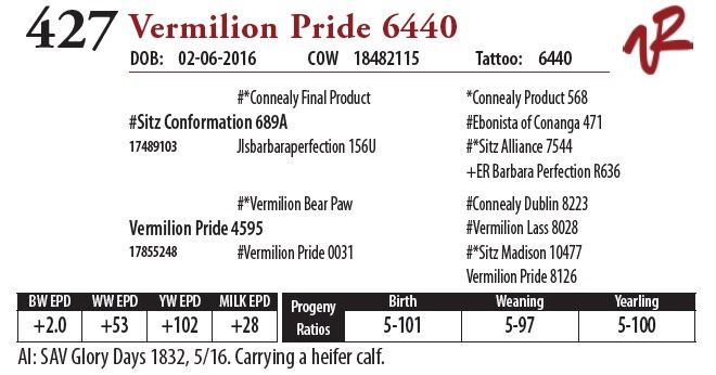 All bulls will be covered 50% by Vermilion Ranch if they are injured during their first breeding season. Breeding season is defined as the 60-day period following the first turnout of bulls.
