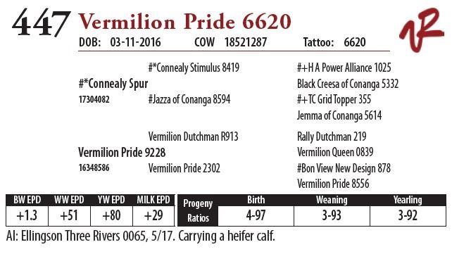 All bulls will be covered 50% by Vermilion Ranch if they are injured during their first breeding season. Breeding season is defined as the 60-day period following the first turnout of bulls.