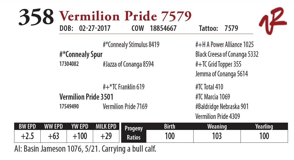 All bulls will be covered 50% by Vermilion Ranch if they are injured during their first breeding season. Breeding season is defined as the 60-day period following the first turnout of bulls.