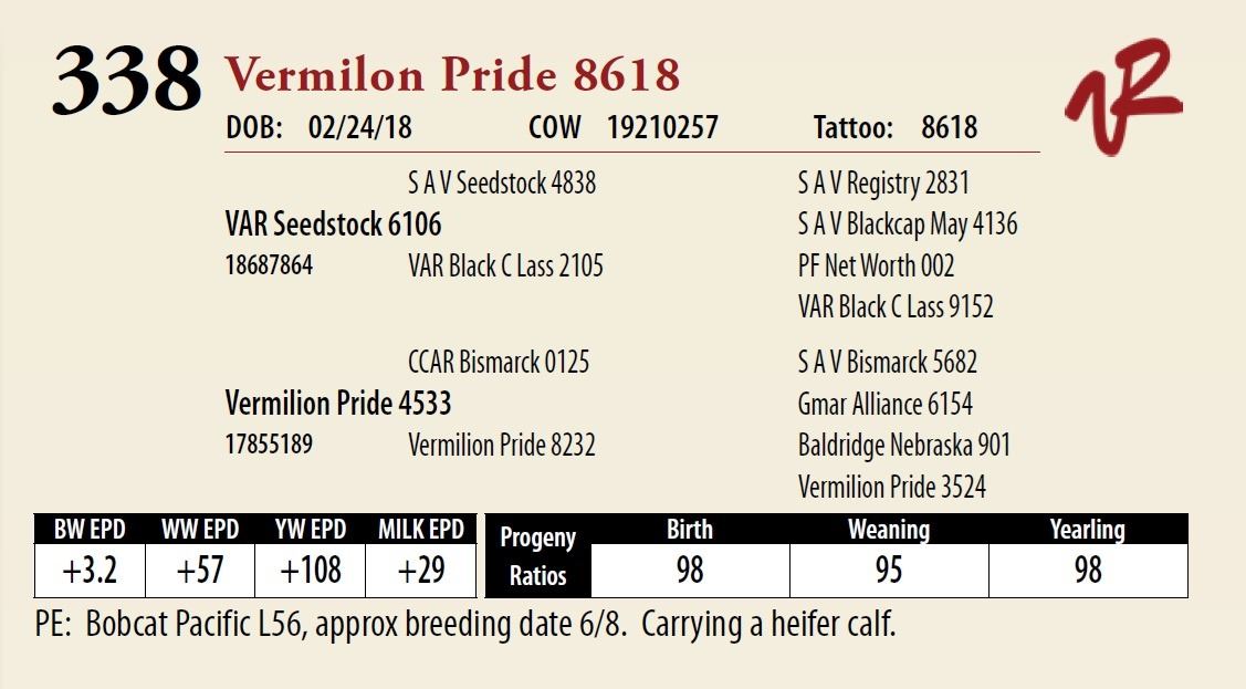 All bulls will be covered 50% by Vermilion Ranch if they are injured during their first breeding season. Breeding season is defined as the 60-day period following the first turnout of bulls.