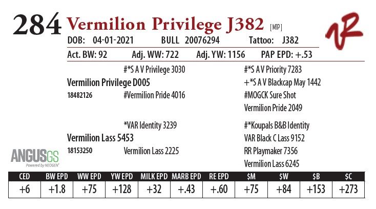 All bulls will be covered 50% by Vermilion Ranch if they are injured during their first breeding season. Breeding season is defined as the 60-day period following the first turnout of bulls.