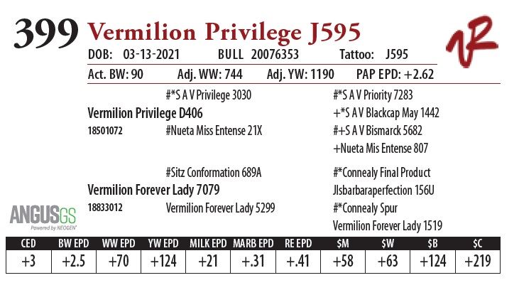 All bulls will be covered 50% by Vermilion Ranch if they are injured during their first breeding season. Breeding season is defined as the 60-day period following the first turnout of bulls.