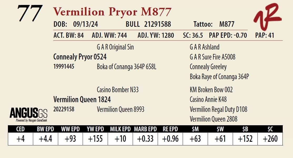 All bulls will be covered 50% by Vermilion Ranch if they are injured during their first breeding season. Breeding season is defined as the 60-day period following the first turnout of bulls.